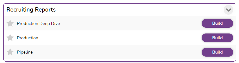 Recruiting Reports will show you the production of your recruiters and sources. Which includes the Production Deep Dive (for viewing production at a granular scale). Production (for viewing a high level of production totals). And Pipeline (for reporting on the total recruiting efforts for a given req).