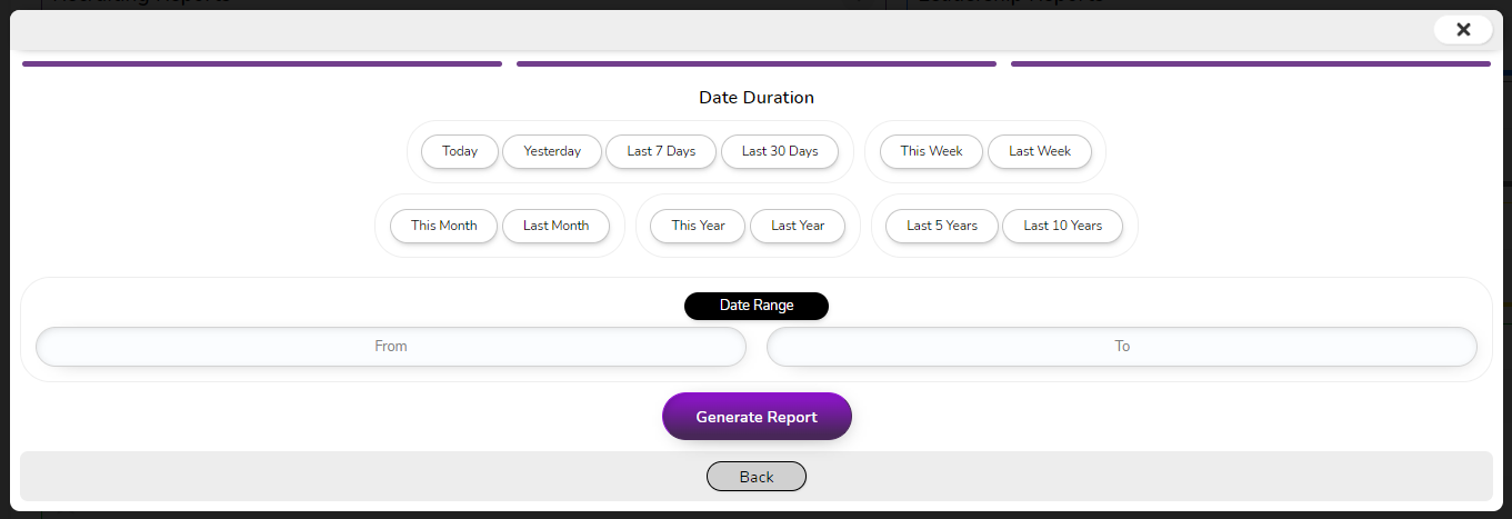 Last will be your Date Duration. We pre-populated a bunch of date options or you can choose a specific date range if you'd like as well.